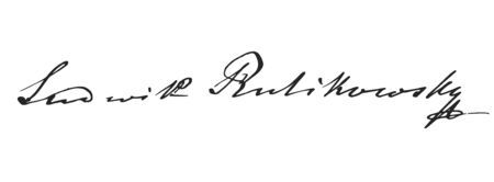 Portret Ludwika Rulikowskiego z roku 1836 pędzla Karola Schweikerta oraz własnoręczny podpis uhonorowanego.