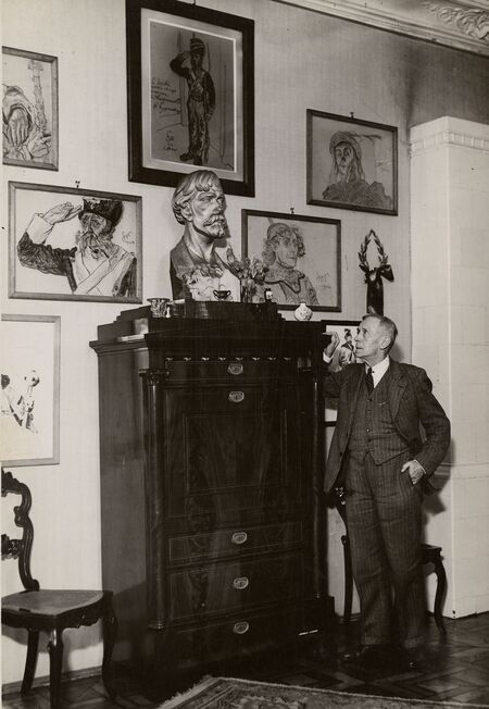 Na fotografii z 1935 r. Ludwik Solski w swoim warszawskim mieszkaniu przy pamiątkach po zaprzyjaźnionym Stanisławie Wyspiańskim – we wrześniu 1939 r. w wyniku bombardowania mieszkanie to wraz z jego cenną zawartością doszczętnie spłonęło; medal o średnicy 60 mm wybity w brązie w 1925 r. wg projektu Wincentego Wabia-Wabińskiego w jubileusz 50-lecia pracy scenicznej artysty, reprodukcja oryginału dyplomu honorowego obywatelstwa Ludwika Solskiego (patrz także s. 144) oraz jego sarkofag w Krypcie Zasłużonych na Skałce w podziemiach bazyliki św. Michała Archanioła i św. Stanisława Biskupa w Krakowie.
