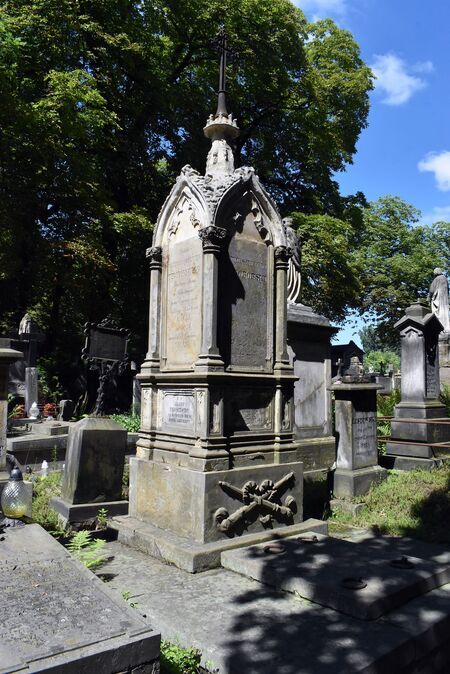 Fragment wpisu do Księgi obywatelskiej… WMK; odcisk w laku pieczęci z herbem Szreniawa odciśniętej przez Ludwika Tęgoborskiego w imieniu króla Prus na akcie zreformowanej w 1833 r. konstytucji WMK oraz miejsce spoczynku – grobowiec na cmentarzu Powązkowskim w Warszawie, w kwaterze 21 (patrz także s. 114–115).