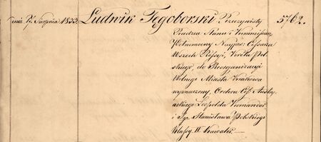 tytuł honorowego obywatela nadany 17 sierpnia 1833 roku |