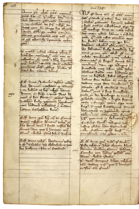 Z „Najstarszej księgi” na stronie 108 wpis z 1334 roku, potwierdzający, że dwa łany położone koło kościoła św. Floriana należące dawniej do Ludwika z Cieszyna zostają przez Jana Winrycha (nr 26) oddane Janowi z Raciborza – oraz powiększenie zapisu imienia (Archiwum Państwowe w Krakowie, sygn. rkps 1, s. 108)