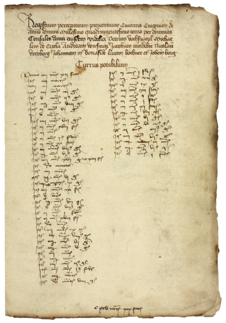 Z księgi miejskiej rachunkowej zawierającej wpisy z lat 1403–1404 strona 1 z wpisem otwierającym rejestr wydatków i dochodów z 1403 roku, gdzie zostali wymienieni urzędujący ówcześnie rajcy, wśród nich Łukasz Bochner –oraz powiększenie zapisu imienia (Archiwum Państwowe w Krakowie, sygn. rkps 1592, s. 1)
