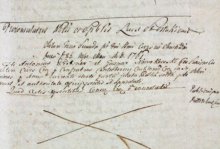 Z księgi radzieckiej obejmującej lata 1757–1763 fragment strony 791 z tytułem wpisów spraw za kadencji burmistrzowskiej Łukasza Szostakiewicza w 1761 roku – oraz powiększenie zapisu imienia i funkcji burmistrza (Archiwum Państwowe w Krakowie, sygn. rkps 482, s. 791)
