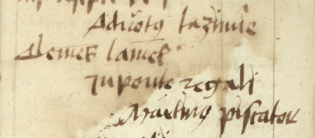 Z księgi ławniczej Kazimierza obejmującej lata 1461–1484: fragment wpisu z 1483 roku dokumentującego wybór wójtów oraz ławników kazimierskich i stradomskich; w elekcji tej rajca Marcin rybak uzyskał urząd wójta Stradomia, jednocześnie wójtem Kazimierza został Klemens Lamel (nr 142) – oraz zbliżenie zapisu imienia (Archiwum Narodowe w Krakowie, sygn. K 377, s. 103)