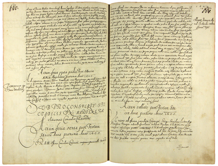 Z księgi radzieckiej obejmującej lata 1598–1601 strony 660–661 z wpisami spraw za kadencji burmistrzowskiej Marcina Wacławowicza w 1600 roku – oraz powiększenie zapisu imienia i funkcji burmistrza (Archiwum Państwowe w Krakowie, sygn. rkps 455, s. 660–661)
