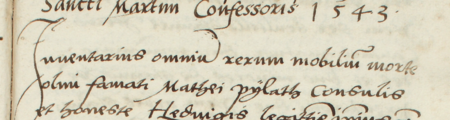 Z księgi ławniczej Kleparza obejmującej sprawy z lat 1543–1546: fragment wpisu z 1543 roku zawierającego inwentarz rzeczy po zmarłym Mateuszu Pilacie, rajcy w Kleparzu – oraz zbliżenie zapisu imienia i urzędu (Archiwum Narodowe w Krakowie, sygn. KL 3, s. 83)
