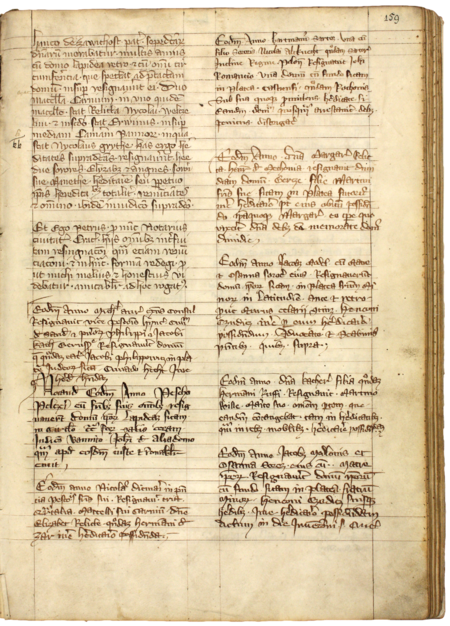 Z „Najstarszej księgi” strona 159 z wpisem z 1343 roku, stwierdzającym dokonanie przez Michała złotnika rezygnacji w imieniu Paszka Hincego i jego dzieci z domu położonego przy ul. Żydowskiej (obecnie św. Anny) – oraz powiększenie zapisu imienia i urzędu (Archiwum Państwowe w Krakowie, sygn. rkps 1, s. 159)