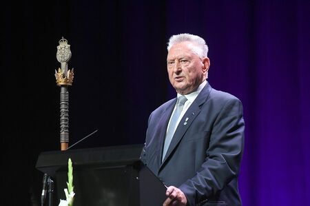 Z uroczystości wręczenia medalu z dyplomem 29 września 2021 r. w Centrum Kongresowym ICE Kraków. Mieczysław Kozłowski podczas uroczystości oraz własnoręczny podpis uhonorowanego.