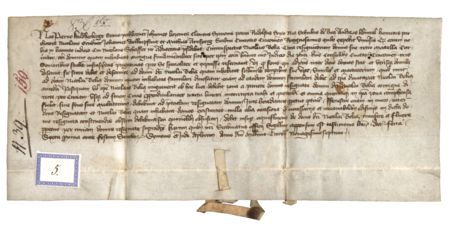 Dokument wydany w 1397 roku w Krakowie, w którym sąd ławniczy stwierdza zastrzeżenia, jakie poczynił Mikołaj Belicz, rezygnując z domu położonego z tyłu jatek rzeźniczych w Krakowie – oraz powiększenie zapisu imienia (Archiwum Bazyliki Mariackiej w Krakowie, sygn. 5)