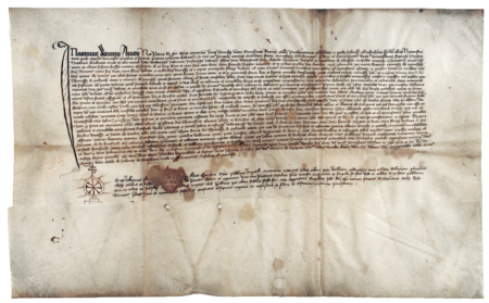 Dokument wydany w 1395 roku w Krakowie, w którym biskup krakowski Piotr rozstrzyga spór o odnogę płynącą z Rudawy, toczący się pomiędzy rajcami krakowskimi, reprezentowanymi między innymi przez Mikołaja Dambrowa, a konwentem dominikanów w Krakowie – oraz powiększenie imienia (Archiwum Państwowe w Krakowie, sygn. perg. 102)