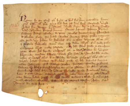 Dokument wydany w 1345 roku w Krakowie, w którym sąd ławniczy krakowski przyjmuje zeznanie Mikołaja Romancza, ławnika krakowskiego, że jest on dłużny Janowi Rotkendorfowi, mieszczaninowi toruńskiemu, 200 grzywien pruskich, które obiecuje zwrócić w czterech ratach – oraz powiększenie zapisu imienia (Archiwum Państwowe w Krakowie, sygn. perg. 27)