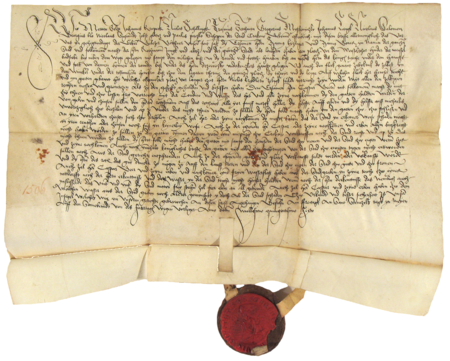 Dokument wydany w 1506 roku w Krakowie, w którym ławnicy miasta Krakowa, a wśród nich Mikołaj Schilling, stwierdzają, że rajcy krakowscy oddali Kasprowi Berowi (nr 301) grunt pod bramą Wiślną, zwany Żabikruk – oraz powiększenie zapisu imienia (Archiwum Państwowe w Krakowie, sygn. perg. 402)