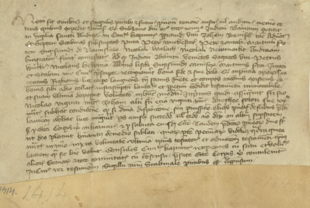 Dokument wydany w 1414 roku w Kazimierzu, w którym ławnicy miejscy, z Mikołajem z Neumarkt w składzie, stwierdzili, że Wawrzyniec, syn Ryczka, zapisał braciom Mikołajowi i Janowi oraz siostrze Dorocie po 20 grzywien; na wypadek śmierci któregoś z braci zapis miał przejść na własność kościoła Bożego Ciała – oraz zbliżenie zapisu imienia (Archiwum Narodowe w Krakowie, sygn. perg. 158)