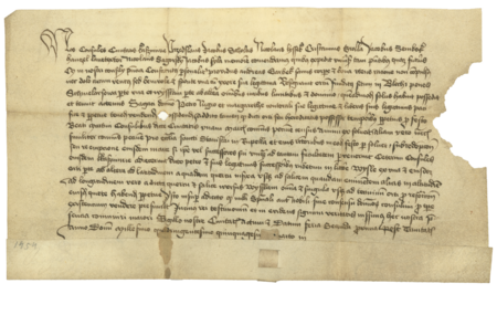 Dokument wydany w 1454 roku w Kazimierzu, w którym rajcowie, z Mikołajem Zagórskim w składzie, potwierdzili, że Andrzej Garbek sprzedał Piotrowi Czarnemu starszemu (nr 99) i jego żonie Małgorzacie ogród na Blechu pod warunkiem, że nowy właściciel będzie płacił czynsz roczny w wysokości 1 grzywny na rzecz rady miejskiej, a 1 grzywnę kościołowi św. Stanisława na Skałce; ponadto rajcy dodali wówczas Piotrowi kawałek zarośli nad Wisłą, w sąsiedztwie kupionego ogrodu – oraz zbliżenie zapisu imienia (Archiwum Narodowe w Krakowie, sygn. perg. 248)