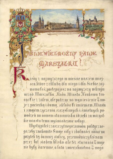 …w uznaniu znakomitych dla miasta położonych zasług przez … dotychczasowego swego prezydenta na godność Marszałka krajowego przez Najj. Pana powołanego… (z uchwały Rady Miejskiej – DzRMK z 1881 r., L. 1, s. 2) |