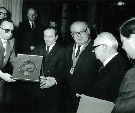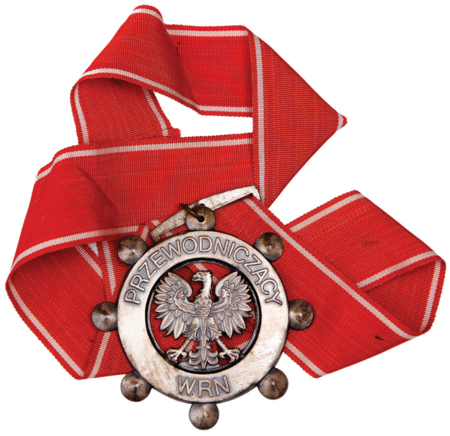 Pierwsze stwierdzone insygnium przewodniczącego rady związane było z systemem rad narodowych i wprowadzono je nie lokalnie w Krakowie, lecz w skali ogólnopaństwowej. Uchwałą Rady Państwa z 6 marca 1980 r. w sprawach ustanowienia Odznaki Radnego oraz Insygnium Przewodniczącego Rady Narodowej (M.P. z 1980 r., Nr 8, poz. 34) wprowadzono stosowną odznakę i ustalono jej wzór, nieznacznie skorygowany przez Radę Państwa w 1988 r. (zob. il. 383). Odznaka ta była stosowana także w Krakowie: w wersji przyjętej dla wojewódzkich rad narodowych, jako że Kraków był wówczas województwem miejskim, a Rada Narodowa miała w związku z tym uprawnienia rady szczebla wojewódzkiego (zob. il. 384).
