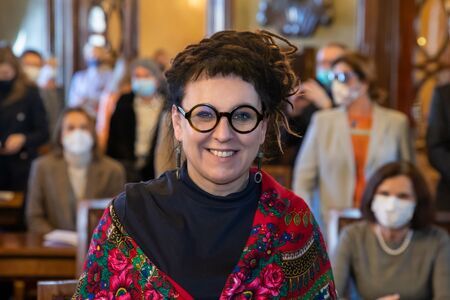 Olga Nawoja Tokarczuk, pisarka, eseistka, poetka i autorka scenariuszy. Urodzona 29 stycznia 1962 r. w Sulechowie, w powiecie zielonogórskim, w rodzinie nauczycielskiej. Ukończyła Liceum Ogólnokształcące w Kietrzu w powiecie głubczyckim, absolwentka Wydziału Psychologii Uniwersytetu Warszawskiego. Po studiach była psychoterapeutką w Wałbrzychu. Zadebiutowała w 1979 r. opowiadaniami opublikowanymi na łamach czasopisma „Na Przełaj”. Debiutem powieściopisarskim była wydana w 1993 r. Podróż ludzi Księgi; w dorobku ma kilkanaście powieści, liczne eseje, scenariusze teatralne i filmowe – Akademia Szwedzka, honorując ją Nagrodą Nobla w dziedzinie literatury, wyróżniła pisarkę za wyobraźnię narracyjną, która z encyklopedyczną pasją pokazuje przekraczanie granic jako formę życia. Trwale związana z krakowskim Wydawnictwem Literackim. Honorowa obywatelka m.in. Wrocławia i Warszawy oraz doktor h.c. Uniwersytetu Warszawskiego i Uniwersytetu Jagiellońskiego.