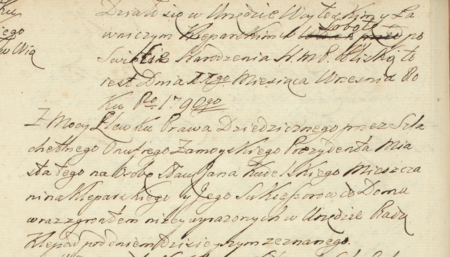 Z księgi wójtowsko-ławniczej Kleparza obejmującej lata 1769–1794: fragment wpisu z 1790 roku dokumentującego sprawę dopuszczenia do posiadania zakupionego przez obywatela kleparskiego Kudelskiego domu w rynku, na podstawie prawa stwierdzonego przez Onufrego Zamoyskiego, wówczas burmistrza miasta – oraz zbliżenie zapisu imienia i funkcji (Archiwum Narodowe w Krakowie, sygn. KL 21, s. 274)