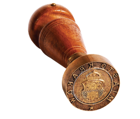 (072) Po okresie staropolskim, dla którego końcową cezurą był Sejm Czteroletni (1788–1792), pieczęcie miasta, czyli te z napisem „Miasto Kraków” w otoku, zniknęły z urzędowego obiegu, nie stwierdzono ich na dokumentach. Niepodzielnie panowały pieczęcie organów władzy miejskiej, będące także pieczęciami „miejskimi”, ale nie „miasta” (co nie wyklucza wprowadzania pieczęci miasta dla celów specjalnych, reprezentacyjno-symbolicznych, jak np. stempel z 1895 r. – zob. il. 002). Odrodzony w III Rzeczypospolitej samorząd krakowski już w 1990 r. zlecił wykonanie tłoku pieczęci miasta Krakowa z prawem używania jej przez Radę Miasta oraz prezydenta miasta, ale organy te miały i mają również własne pieczęcie identyfikujące, o czym będzie mowa w rozdziale o insygniach (z zasobów UMK)