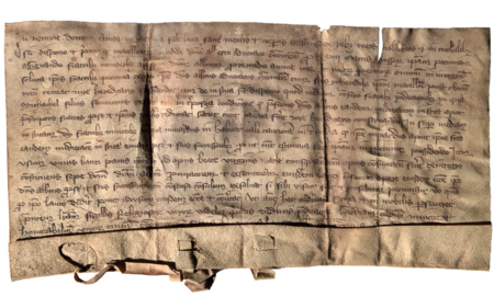 (046) Dokument pergaminowy wystawiony w 1303 r., mocą którego krakowska mieszczka Sulisława dokonała legatu testamentowego, co wójt krakowski potwierdził, opatrując ten dokument pieczęcią miasta i wójtostwa. Sam pergamin, pomimo perypetii, przetrwał i znajduje się w Archiwum oo. Franciszkanów w Krakowie, „po drodze” przepadła jednak sama pieczęć. Szczęśliwie jednak zachował się jej niebudzący wątpliwości przerys – zob. il. 047 (APF, sygn. G-I-2)