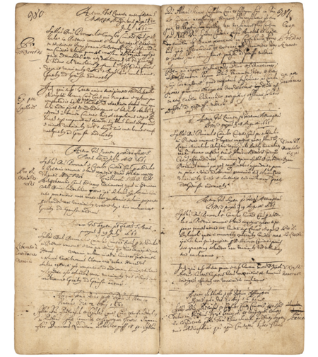 (065) Strony z miejskiej księgi radzieckiej, gdzie znajduje się wpis w języku łacińskim z 1621 r., dotyczący nowej pieczęci miasta, o treści: Działo się w najbliższy poniedziałek przed świętem św. Elżbiety [15 XI] roku Pańskiego 1621. Przesławni panowie Maciej Wojeński burmistrz, Krzysztof Szober, Stanisław Rapp, Ludwik Cromer, Zygmunt Alantsee, Krzysztof Słowikowski, Jan Wisembergk, Mikołaj Pernus i Grzegorz Klausuic, rajcy urzędujący, zostali wezwani dziś pisemnie na posiedzenie i zgromadzili się w ratuszu krakowskim, aby podczas obrad podjąć dojrzałe decyzje i przywrócić dawną świetność tego miasta przez wzbogacenie jego znaków – nie tylko wśród innych [miejskich] oraz szlacheckich, ale także obcych, teraz bowiem przez pewną zmianę znak miasta jest uszczuplony. Aby więc przez miłość do tego miasta ozdobić je i dawną godność przywrócić, jednogłośnie wyrazili i postanowili, że znakiem, czyli pieczęcią miasta, które uznawane jest jako stołeczne przez swoje liczne zasługi dla Rzeczypospolitej, będą trzy czerwone wieże wraz z koroną jako znak stołecznego i pierwszego z miast Królestwa, co też postanowiono i sprawiono (tłum. Marcin Starzyński) (ANK, sygn. rkps 1213, s. 306–307)