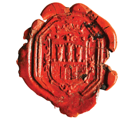 W tym rozdziale prezentujemy zatem pieczęć z grupy sygnetowych (zob. il 405–406), ale przede wszystkim pieczęć sygnetową ze znanego i zachowanego do naszych czasów pierścienia burmistrzowskiego: to odcisk „opłatkowy”, wcześniej już przywołany przy przedstawieniach herbu miasta (zob. il. 011), a także odcisk w laku (zob. il. 407–408). Sam pierścień pochodzi z 1532 r., ale przywołane odciski to rysunek „oczka” tego pierścienia po jego wymianie w roku 1590. W księgach miejskich znajdujemy zapis o zakupieniu przez Radę Miejską pierścienia sygnetowego w 1398 r., zatem już wówczas pieczęć jako insygnium burmistrzowskie istniała, chociaż inne ślady z tamtych czasów, oprócz tej jednej zapiski, nie zachowały się.