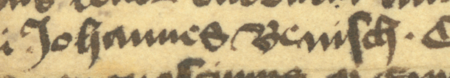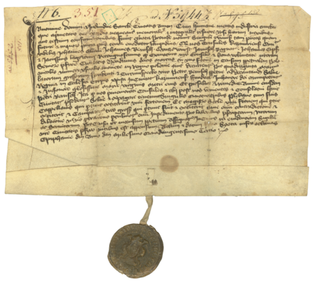 Dokument wydany w 1403 roku w Kazimierzu, mocą którego rada miejska sprzedała za 40 grzywien Piotrowi Benischowi 2 grzywny i 1 wiardunek czynszu wieczystego z przeznaczeniem na śpiewanie Salve Regina w kościele Bożego Ciała za duszę Benischa; przy dokumencie na pasku pergaminowym pieczęć mała radziecka (sekretna) – oraz zbliżenie pieczęci i zapisu imienia (Archiwum Narodowe w Krakowie, sygn. perg. 1352)