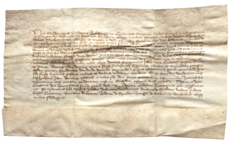 Dokument wydany w 1389 roku w Krakowie, w którym Sędziwój, wojewoda kaliski i starosta krakowski, zaświadcza, że właściciele ze Smarzowic sprzedali część wsi Piotrowi Fochsczagilowi za 50 grzywien – oraz powiększenie zapisu imienia i krakowskiego obywatelstwa (Archiwum Bazyliki Mariackiej w Krakowie, sygn. perg. 200)
