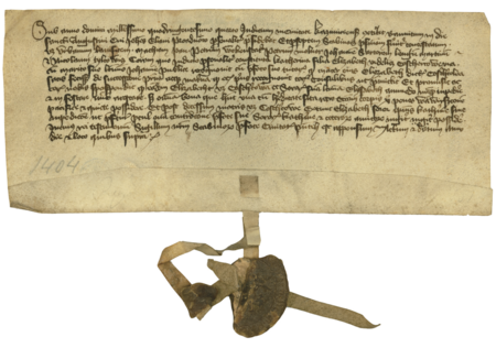 Dokument wydany w 1404 roku w Kazimierzu przez ławę miejską, w którym kazimierscy ławnicy, z Piotrem Molnerem w składzie, stwierdzili, że Katarzyna, córka Elżbiety Costherkowej, została zaspokojona przez matkę z majątku ojczystego i macierzyńskiego; przy akcie na pergaminowym pasku pieczęć ławnicza kazimierska zachowana w ułamkach – oraz zbliżenie pieczęci i zapisu imienia (Archiwum Narodowe w Krakowie, sygn. perg. 142)
