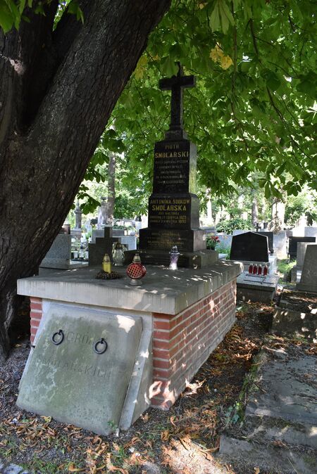 Piotr Smolarski, prawnik, radca Sądu Krajowego Wyższego w Krakowie, naczelnik Sądu Powiatowego w Podgórzu. Urodzony 18 października 1817 r. w Suchej koło Wadowic, syn Wawrzyńca. W 1846 r. odnotowany jako asystent magistracki w Zatorze, od 1856 r. już w sądownictwie jako adiunkt w Sądzie Powiatowym w Kętach, w latach 1861–1864 w tejże roli w Oświęcimiu i od 1865 r. w Podgórzu. Po awansie w 1864 r. został sędzią i naczelnikiem Sądu Powiatowego w Podgórzu. W 1872 r. przeszedł do Krakowa do Sądu Krajowego na etat sędziego-radcy, w 1884 r. został sędzią-radcą Sądu Krajowego Wyższego w Krakowie, od 1888 r. na emeryturze. We wcześniejszej, powiatowej fazie kariery podejmował się odpłatnej funkcji justycjariusza dla szeregu dominiów w Galicji Zachodniej, w tym w Bystrej, Lipowej, Łętowni, Rabce, Rabie Wyżnej, Sieniawie, Skomielnej, Spytkowicach, Suchej, Ślemieniu, Tokarni i Zatorze. Żonaty z Antoniną z Sobków, mieli pięciu synów: pierworodnego Stanisława, studenta zmarłego w 1868 r., pochowanego na cmentarzu Podgórskim starym w Krakowie, Kazimierza, doktora prawa, Wiktora, Zygmunta i Władysława, doktora medycyny, oraz córkę Helenę. Zmarł 25 lutego 1891 r. w Krakowie; pochowany na tamtejszym cmentarzu Rakowickim.