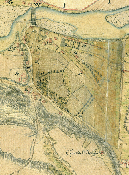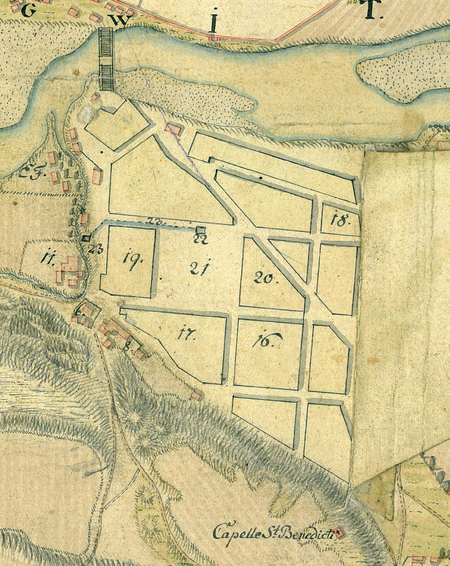 Sporządzony w 1779 roku przez Charles’a de Hoeferna plan pod oddającym w pełni zawartość tytułem Plan Krakowa, Kazimierza, Ludwinowa i Podgórza z projektem utworzenia nowego miasta na Ludwinowie oraz zmianami w rozplanowaniu zabudowy Podgórza. Na zbliżeniu po lewej stronie widoczny stan terenów Podgórza w chwili sporządzania planu, z zaznaczeniem prywatnych parcel i domów, na zbliżeniu po prawej stronie – plan zagospodarowania tych terenów, gdzie pod oznaczeniami cyfrowymi przewidziano między innymi: 17 – ratusz, 18 – szkołę, 19 – urząd cyrkularny, 20 – komendanturę z żandarmerią, 21 – rynek (Archiwum Narodowe w Krakowie, sygn. Z. Kart. II-13)