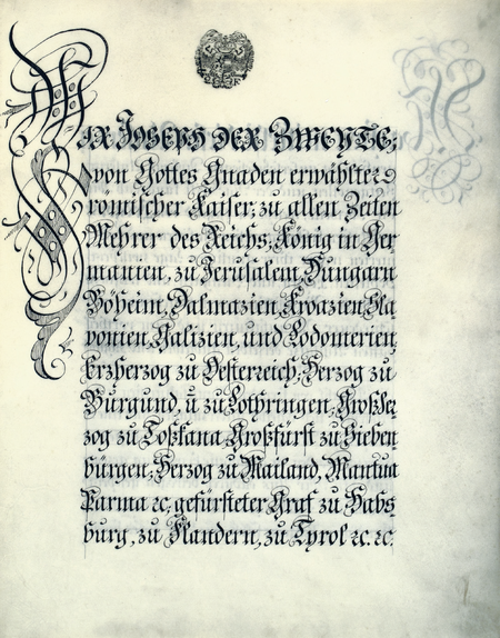 My Józef Drugi, z łaski bożej wybrany cesarz rzymski, po wieczne czasy pomnożyciel Rzeszy, król w Germanii, [król] Jerozolimy, Węgier, Czech, Dalmacji, Chorwacji, Slawonii, Galicji i Lodomerii, arcyksiążę Austrii, książę Burgundii i Lotaryngii, wielki książę Toskanii, wielki książę Siedmiogrodu, książę Mediolanu, Mantui, Parmy etc., podniesiony do godności książęcej hrabia Habsburga, Flandrii, Tyrolu etc. etc., obwieszczamy niniejszym naszym własnoręcznie podpisanym dyplomem współczesnym i potomności, że poddaliśmy pod najłaskawszą naszą rozwagę pożytki, jakie okolica Podgórze [leżąca] w naszych dziedzicznych królestwach Galicji i Lodomerii z uwagi na swe korzystne położenie między Śląskiem, Polską i Węgrami, oraz z uwagi na bliskość nurtu Wisły, daje do utworzenia różnych manufaktur oraz do korzystnego ich prowadzenia, oraz tę dodatkową okoliczność, że znaczna liczba obcych manufakturzystów i kupców już została zachęcona do tego, by się tam osiedlić, i wybudować znaczącą ilość budynków, i że poczuliśmy się tym nakłonieni do tego, by, mając na uwadze ożywienie narodowej skrzętności i działalności, tożsamo Podgórze, jak już to oznajmiliśmy w drukowanym uniwersale z dnia 26 lutego 1784 r., rozszerzyć, wesprzeć ósmą częścią mili ziemi, podnieść do godności wolnego miasta królewskiego, i temuż samemu niniejszym dyplomem nadać najłaskawiej następujące wolności i przywileje (z powyższego dokumentu początkowy fragment, w przekładzie P. Zarychta za: Wyrozumska 2007, s. 71–74).