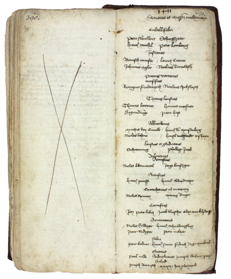 Z księgi radzieckiej obejmującej lata 1392–1411 strony 390–391 z wpisem z 1411 roku, zawierającym wykaz starszych i mistrzów cechowych, gdzie w środkowej części wymieniono starszych i mistrzów malarzy, szklarzy i stolarzy, wśród których znajduje się Remigiusz Freodenrich – oraz powiększenie zapisu imienia (Archiwum Państwowe w Krakowie, rkps 427, s. 390–391)