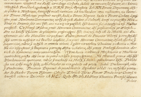 Z kopiarza zawierającego przywileje i prawa Krakowa z lat 1257–1788, zwanego Kodeksem Zaleskiego, strona tytułowa, ze strony 242v fragment dokumentu z 1655 roku określającego powinności rady i ówczesnego burmistrza Sebastiana Kłosowica w związku z przygotowywaniem miasta do obrony przed Szwedami – oraz powiększenie zapisu imienia i funkcji burmistrza (Archiwum Państwowe w Krakowie, rkps 1449, s. 1, 242v)
