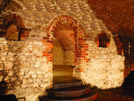 Zachowana przy ul. Brackiej część frontowa siedziby wójta dziedzicznego Henryka mł., wybudowanej w kształcie wieży obronnej z końcem XIII wieku; ze względu na znaczne podniesie się poziomu Rynku i przyległych ulic obecnie w piwnicach kamienic przy ul. Brackiej 3–5, u zbiegu z ul. Gołębią; hipotetyczne miejsce spotkań rajców u wójta, będącego do roku 1312 organem nadrzędnym wobec rady miejskiej. Na fotografii górnej widok pozostałości wieży z zewnątrz, poniżej widok jej wnętrza (więcej ilustracji patrz Poczet 2020, s. 83–84).