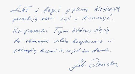 …w uznaniu szczególnych zasług dla Stołecznego Królewskiego Miasta Krakowa… (z uchwały Rady Miasta Krakowa nr X/169/15) |