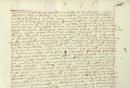 Z księgi grodzkiej krakowskiej obejmującej lata 1519–1521: fragment wpisu z 1519 roku dokumentującego udzielenie poręczenia za aresztowanych czternastu przedstawicieli władz Kazimierza w związku ze sprawą stracenia w 1519 roku trzech szlachciców; oskarżonymi w tej sprawie byli rajcy, wójtowie i ławnicy: Stanisław Sieczko (nr 184), Piotr Szeląg (nr 162), Stanisław Stano Komenecz (nr 166), Bartłomiej Owoczek (nr 173), Wojciech konwisarz (nr 177), Marcin Burnak (nr 180), Bernard Fox (nr 181), Walenty Klajner (nr 182), Piotr Nikiel, Mikołaj Szeląg, Jan Rabka (nr 195), Stanisław Nosek, Jan kowal (nr 186) i Stanisław Kawka – oraz zbliżenie zapisu imienia i wójtowskiego urzędu (Archiwum Narodowe w Krakowie, sygn. CC 35, s. 111)