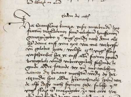 Z księgi radzieckiej obejmującej lata 1450–1483 fragment strony 462 z wpisem z 1471 roku stwierdzający m, że rajca Stanisław Kuncze zapisał swojej żonie Magdalenie 2000 florenów węgierskich – oraz powiększenie zapisu imienia (Archiwum Państwowe w Krakowie, sygn. rkps 429, s. 462)