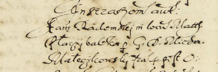 Z księgi miejskiej Kazimierza zawierającej indeks rzeczowy wpisów do kazimierskich ksiąg radzieckich z lat 1530–1603: fragment kopii wpisu elekcji rady urzędującej na rok 1586; wśród powołanych Stanisław Radomski – oraz zbliżenie zapisu imienia (Archiwum Narodowe w Krakowie, sygn. K 176, s. 208)