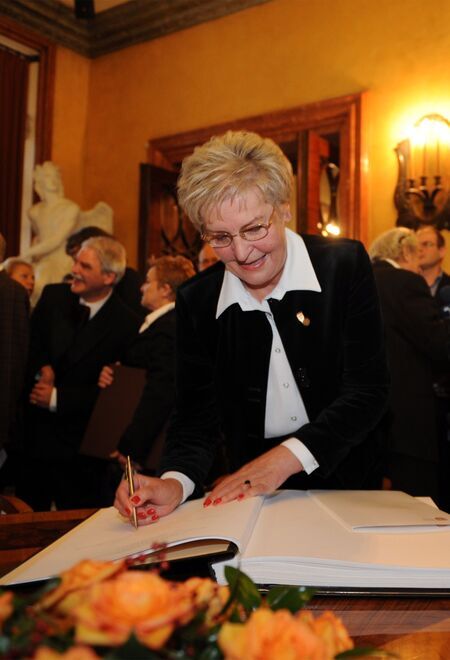 Z uroczystości wręczenia medalu z dyplomem 16 października 2013 r. w Pałacu Wielopolskich. Wystąpienie Stanisławy Centkowskiej w Sali Obrad RMK oraz własnoręczny podpis uhonorowanej.