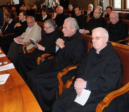 Prezydium RMK z przemawiającym dyrektorem Szpitala; przedstawiciele zakonu i Szpitala z apb. metropolitą krakowskim seniorem kard. Franciszkiem Macharskim oraz bracia bonifratrzy podczas uroczystości.