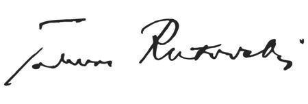 Fotografia portretowa Tadeusza Rutowskiego oraz własnoręczny podpis uhonorowanego.