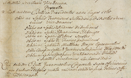 Z księgi radzieckiej obejmującej lata 1763–1771 fragment strony 248 z wykazem rajców urzędujących nominowanych na rok 1765, wśród których znajduje się Tomasz Kikulinus – oraz powiększenie zapisu imienia (Archiwum Państwowe w Krakowie, sygn. rkps 483, s. 248)