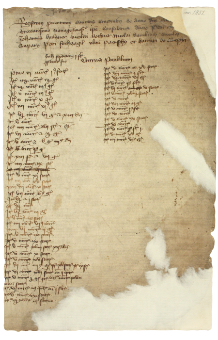 Z księgi rachunków miejskich obejmującej lata 1392–1393 strona 1 z wykazem rajców urzędujących w 1392 roku – oraz powiększenie zapisu imienia (Archiwum Państwowe w Krakowie, sygn. rkps 1588, s. 1)