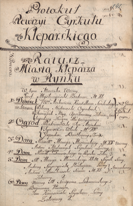 Na stronach 57–58: Kleparskie „życie po życiu” – strony ze spisu domów sporządzonego w 1792 roku, zaraz po przyłączeniu miasta do granic Krakowa, jako jego IV cyrkułu-dzielnicy; swoisty protokół zamknięcia czasów samodzielności miejskiej i otwarcia podmiotowości dzielnicowej w ramach miasta Krakowa (Biblioteka Naukowa PAU/PAN w Krakowie, sygn. rkps 39, s. 141, 142v)