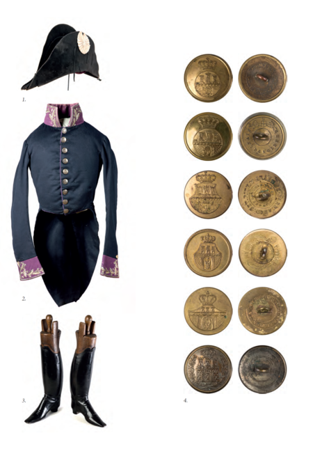 Z Tek Ambrożego Grabowskiego rysunek ołówkiem z 1828 r. Nauczyciel z liceum oraz na podkładzie tego rysunku próba rekonstrukcji munduru urzędniczego wójta gminy miejskiej – podstawowy krój i kolorystyka wszystkich mundurów cywilnych w Wolnym Mieście Krakowie, od mundurów obywateli po mundury senatorskie, były jednolite, różnice uwidaczniały się w szczegółach dodatków i wyróżników, co ukazano tutaj zgodnie z przedstawioną wcześniej regulacją prawną z 1818 r. (rysunek ołówkiem: Archiwum Narodowe w Krakowie, sygn. E 142, k. 319; rekonstrukcja własna, grafika komputerowa Bartosz Marjankowski) Z zachowanych elementów mundurów cywilnych z okresu Wolnego Miasta Krakowa: 1. kapelusz stosowany (bikorn – dwuróg) do munduru radcy Trybunału Rzeczypospolitej Krakowskiej; 2. frak mundurowy radcy Trybunału Rzeczypospolitej Krakowskiej; 3. para butów z cholewami (przed 1831 r.); 4. guziki mundurowe z herbami Wolnego Miasta Krakowa; 5. szpady mundurowe z herbami Wolnego Miasta Krakowa na jelcach rękojeści (Muzeum Narodowe w Krakowie, nr inw. MNK V-193; MNK V-156; MNK V-188/1-2; MNK V-607/1/2/4/5/6/9; MNK V-580; MNK V-1316; reprodukcje wykonane przez Pracownię Fotograficzną MNK)