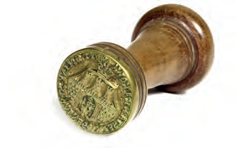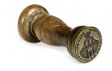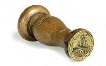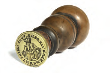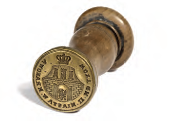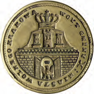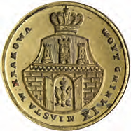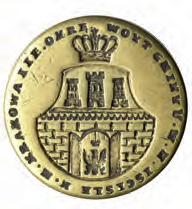 | Gmina I | W zachowanej w Archiwum Narodowym w Krakowie kolekcji pieczęci gmin miejskich WMK tłoku pieczętnego Gminy I Miejskiej nie ma, z trudem zidentyfikowano tylko odciski w postaci pieczęci opłatkowych wójta tej gminy z lat 20. XIX w.; mogłoby to świadczyć o trudnych losach tego tłoku pieczętnego już w okresie WMK. Tutaj widok jednej ze wspomnianych pieczęci opłatkowych. | |