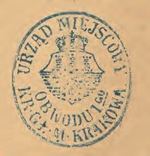 URZĄD MIEJSCOWY KR.[ÓLEWSKIEGO] GŁ.[ÓWNEGO] M.[IASTA] KRAKOWA OBWODU IGO