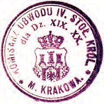 Przód okładziny i przykładowa strona dziennika podawczego prowadzonego w Komisariacie Obwodu IV w roku 1916 (Archiwum Narodowe w Krakowie, sygn. Kr 4703, okładzina, s. 3) Przód okładziny i przykładowa strona dziennika podawczego prowadzonego w Komisariacie Obwodu IV w latach 1917–1918 (Archiwum Narodowe w Krakowie, sygn. Kr 4704, okładzina, s. 3) W roku 1925 szereg jednostek organizacyjnych Magistratu nadal urzędowało w Pałacu Larischa położonym na rogu ul. Brackiej i pl. Wszystkich Świętych (dawnej głównej siedzibie władz miasta, zastąpionej w tej roli przez zakupiony dla miasta w 1864 r. Pałac Wielopolskich). Mieli tam swoje biura m.in. komisarze obwodowi: Obwodu I – na parterze, oraz Obwodu II – na drugim piętrze. Część piętra pierwszego nadal przeznaczona była na prezydenckie mieszkanie, zajmowała je wówczas wdowa po Juliuszu Leo. Że sąsiedztwo to nie było łatwe, świadczą dwie notatki służbowe z roku 1925 skierowane w imieniu personelu urzędniczego do Biura Prezydialnego Magistratu – w jaki sposób konfliktową sytuację rozwiązano, dokumenty milczą (Archiwum Narodowe w Krakowie, sygn. 29-665-242)