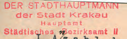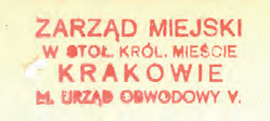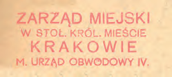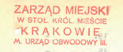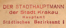 Z początkiem okupacji stosowano dotychczasowe pieczęcie, dostosowane do nowej nazwy miasta Krakowa poprzez usunięcie skrótów przymiotników „stołeczne, królewskie”. Przykłady: